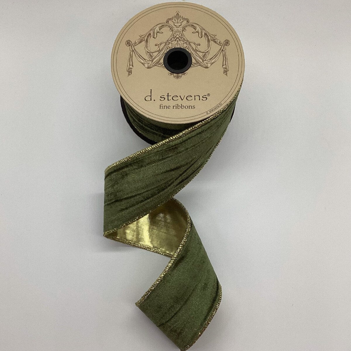 2.5" Marble Velvet Gold Lame Back Ribbon, Olive