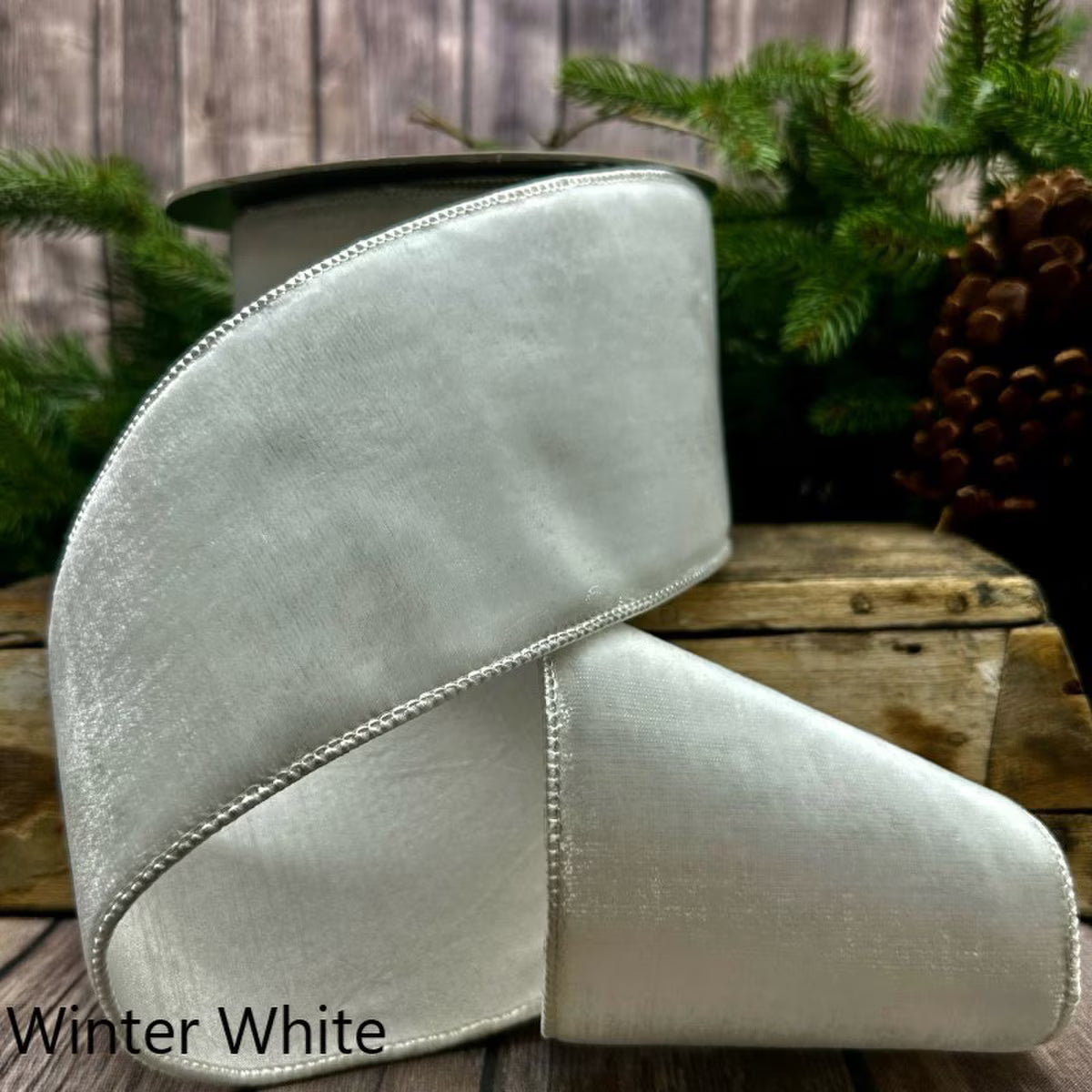 4" VP Lush Velvet Mating Dupion Back Ribbon, Winter White