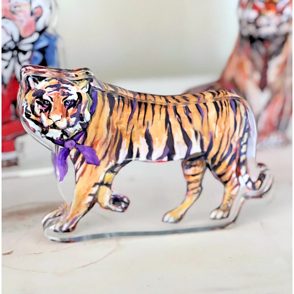 GEAUX TIGERS! Show your LSU pride with our Acrylic Gameday Tiger, a bold and spirited display piece featuring Lauren Dunn’s original tiger artwork. Printed on thick, crystal-clear acrylic, this freestanding tiger is a fan-favorite for desks, dorms, bookshelves, and beyond. Choose from two sizes—Large (5.5" x 7.5") or Bitty (3.3" x 4.4")—to suit your space or gifting needs. A fierce and fabulous way to cheer on your favorite team all year long.