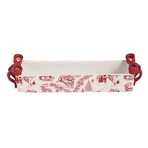 2-piece set. Stoneware plate features toile surface and dimensional bow at rim. Comes with wooden spatula with cast aluminum tree handle.