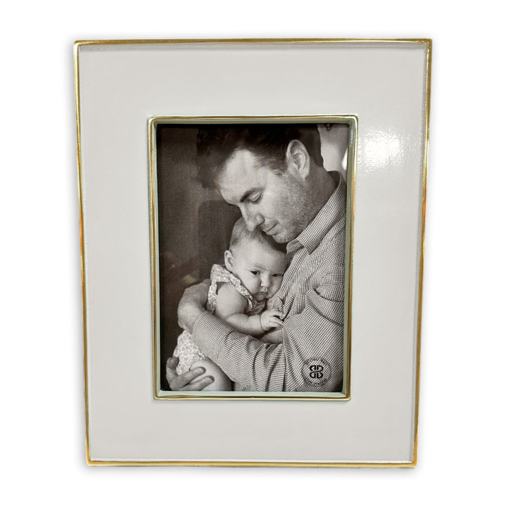 Fabulous design in picture frames! Beatriz Ball's FRAME Encanto Jason is the very essence of sophistication, strikingly presented in colorfully enameled metal, rimmed in gold. With a wide rectangular shape, the frame is ideal for displaying your favorite photos in ENCANTO Jason style. Of heirloom quality, this frame may be displayed vertically or horizontally and makes a perfect gift for any occasion. This handsome enameled frame will add a distinctive decorative touch to any room and will be cherished for years to come. Beatriz Ball’s intensely handmade products use eco-friendly and sustainable materials and are crafted by artisans who trace a heritage of metalworking for generations. Made of a top quality, easy-care, aluminum alloy with an enamel finish. This item is for decorative purposes only.