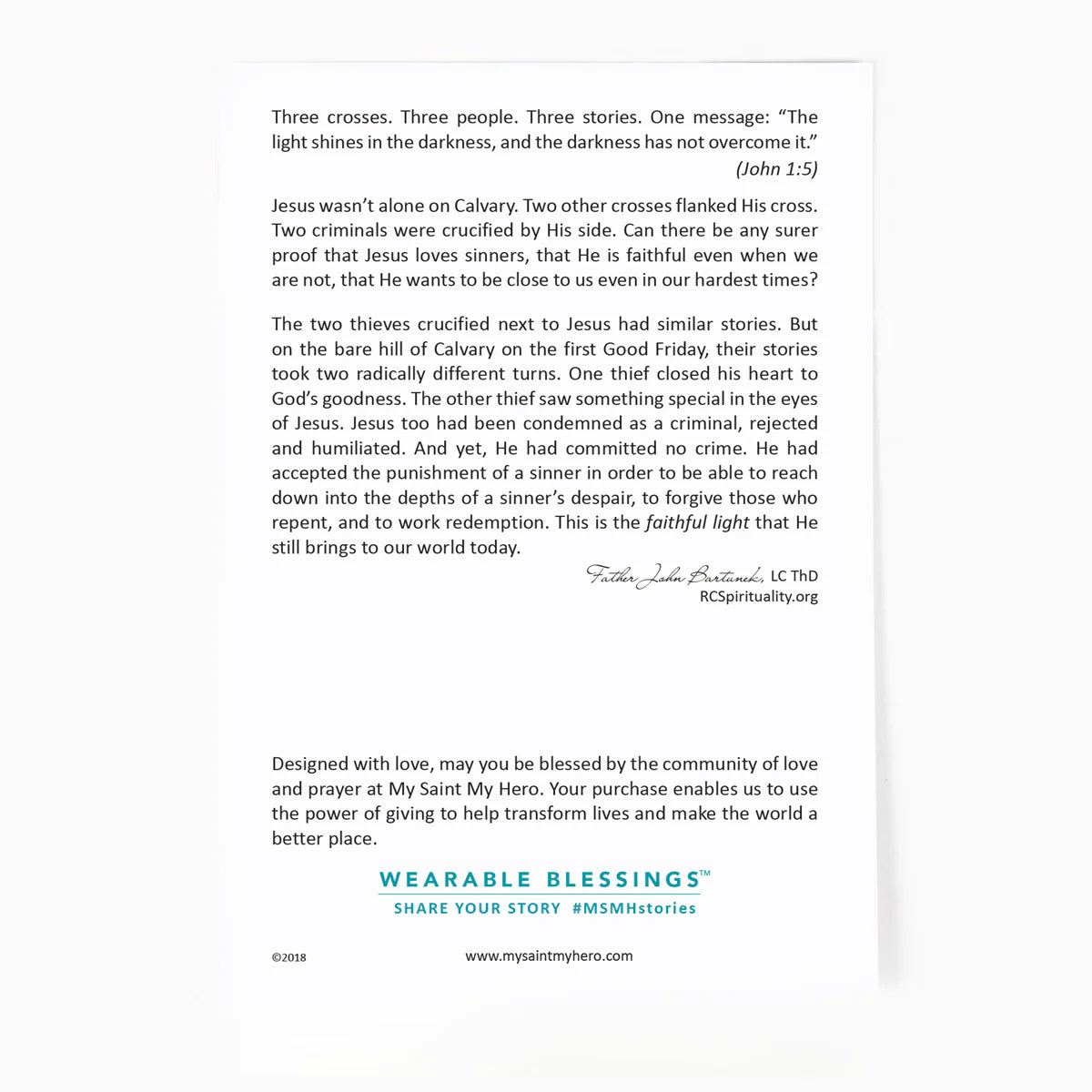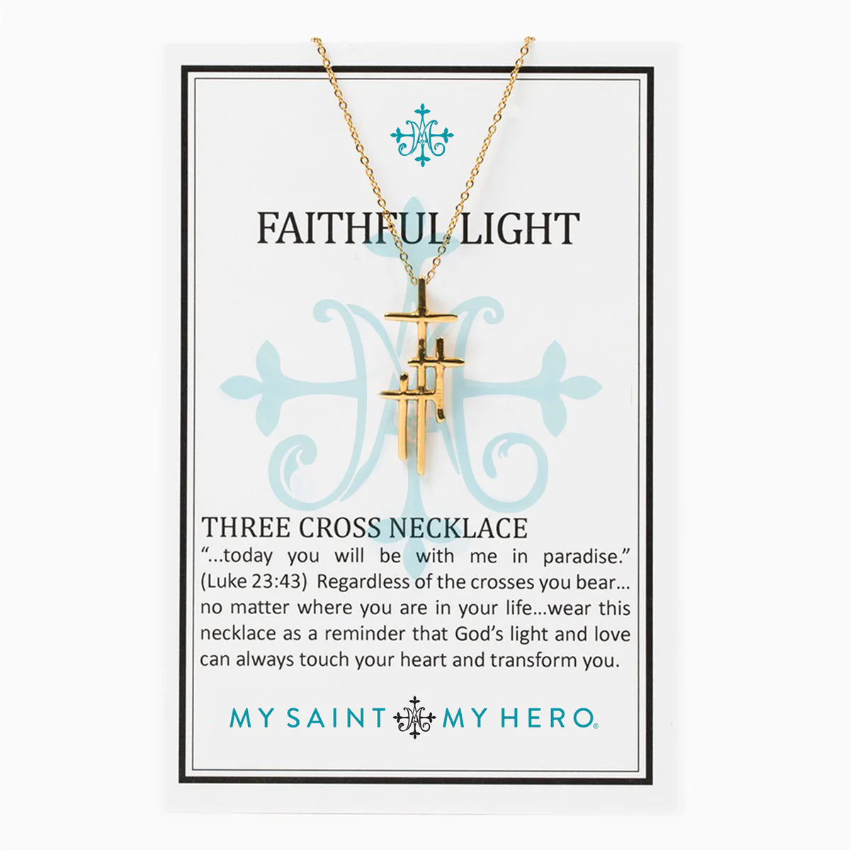 - Faithful Light Three Cross Necklace comes on an inspirational card