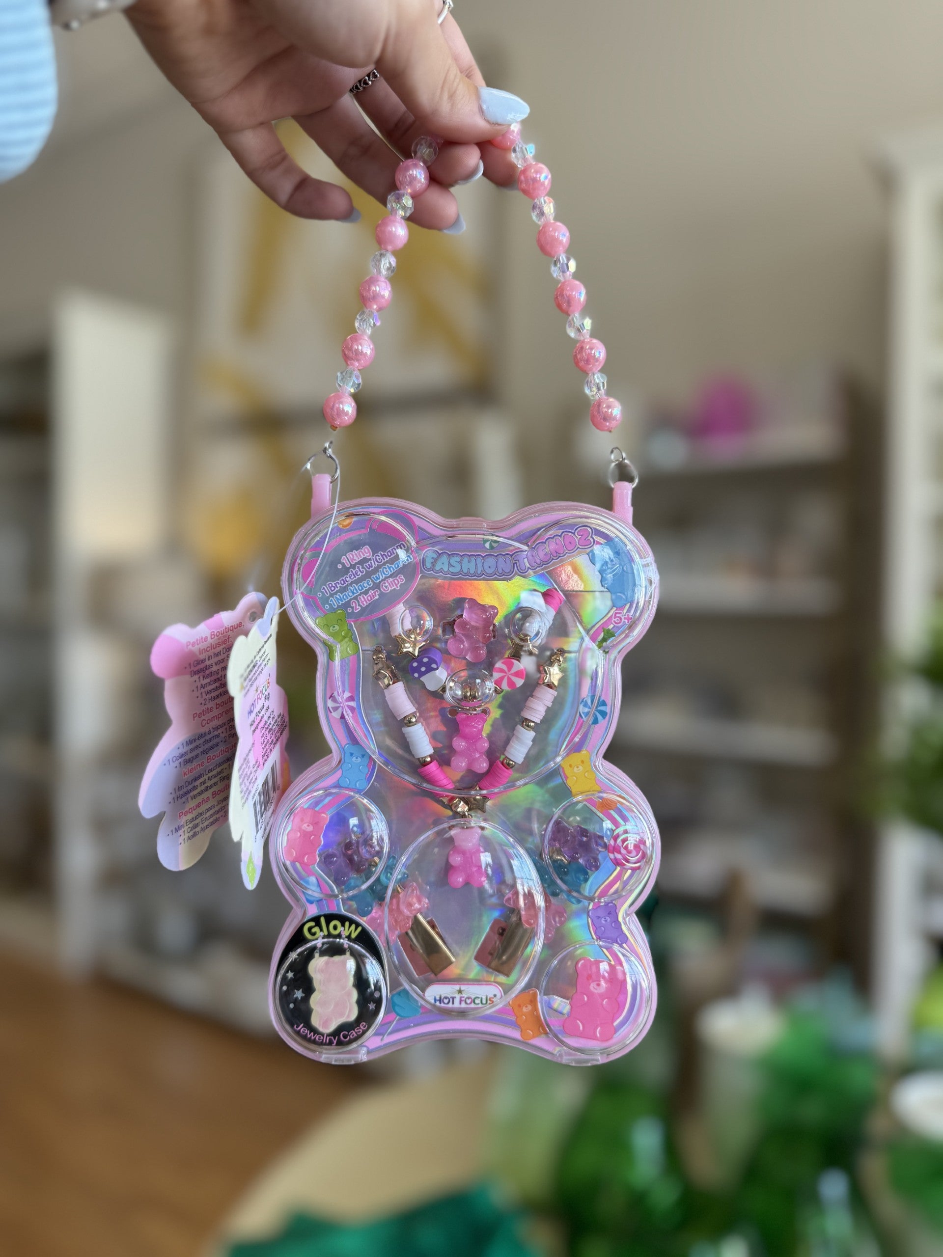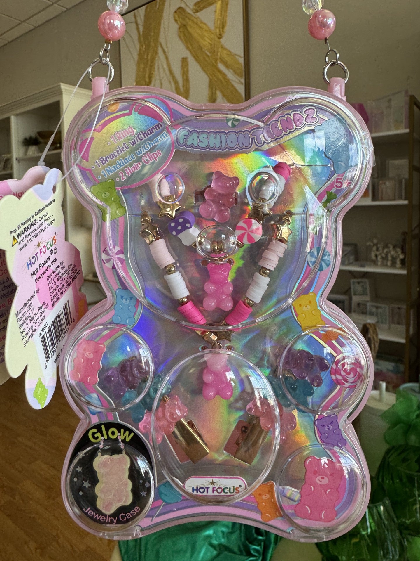 Keywords: kids jewelry set, glow-in-the-dark jewelry case, gummy bear charm jewelry, HighlandSide party favors, cute fashion accessories, tween accessory set, girls dress-up gifts