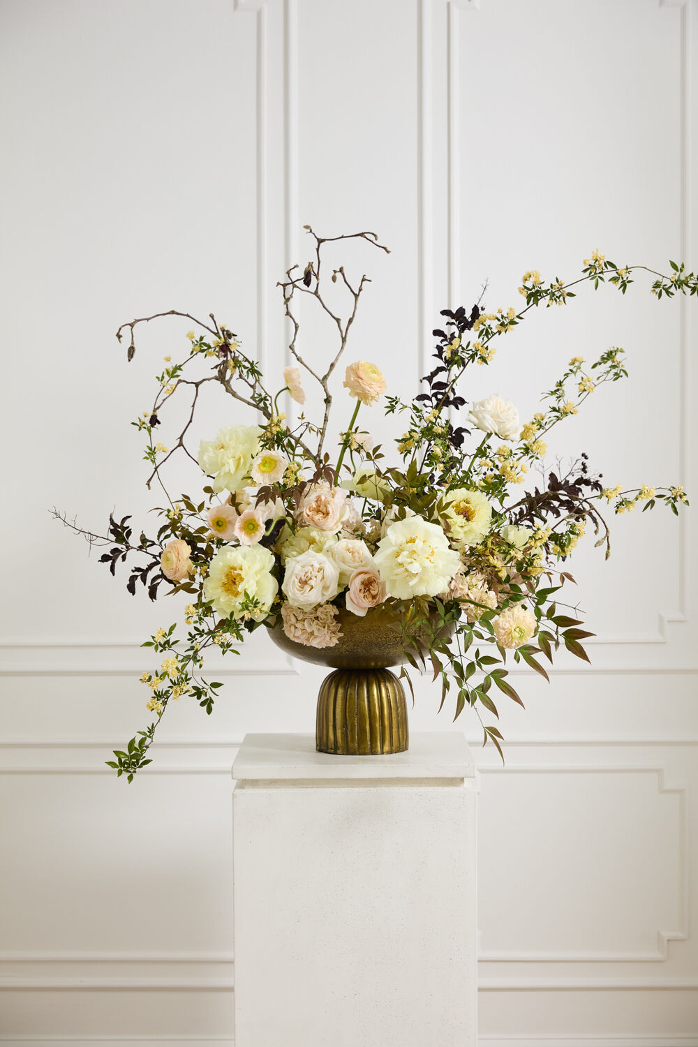 Blend a modern look with the classic hue & silhouette of the large-scale gold cast aluminum Hamilton Footed Bowl. With an elevated ribbed base beneath the wide bowl, this versatile vessel is ideal for both modern or vintage-inspired weddings or events. Perfect for styling on an entry table or aisle columns, this bowl brings a sophisticated flourish to a large arrangement or plant.