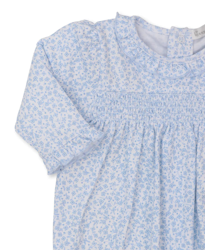 - Our Petite Blooms Footie has a pretty allover floral print, snap-back closure, and cute front detailing. Made from the softest Pima cotton for ultimate comfort for baby girl.