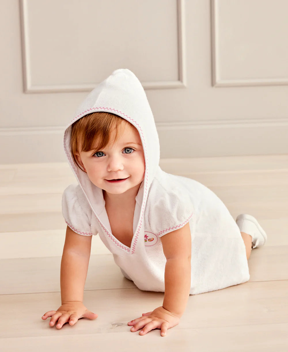 Baby will be ready for the beach and beyond in our terry coverup. Fun sea shell embroidery accent this hooded one piece, sure to keep your baby cool and covered while under the hot summer sun.