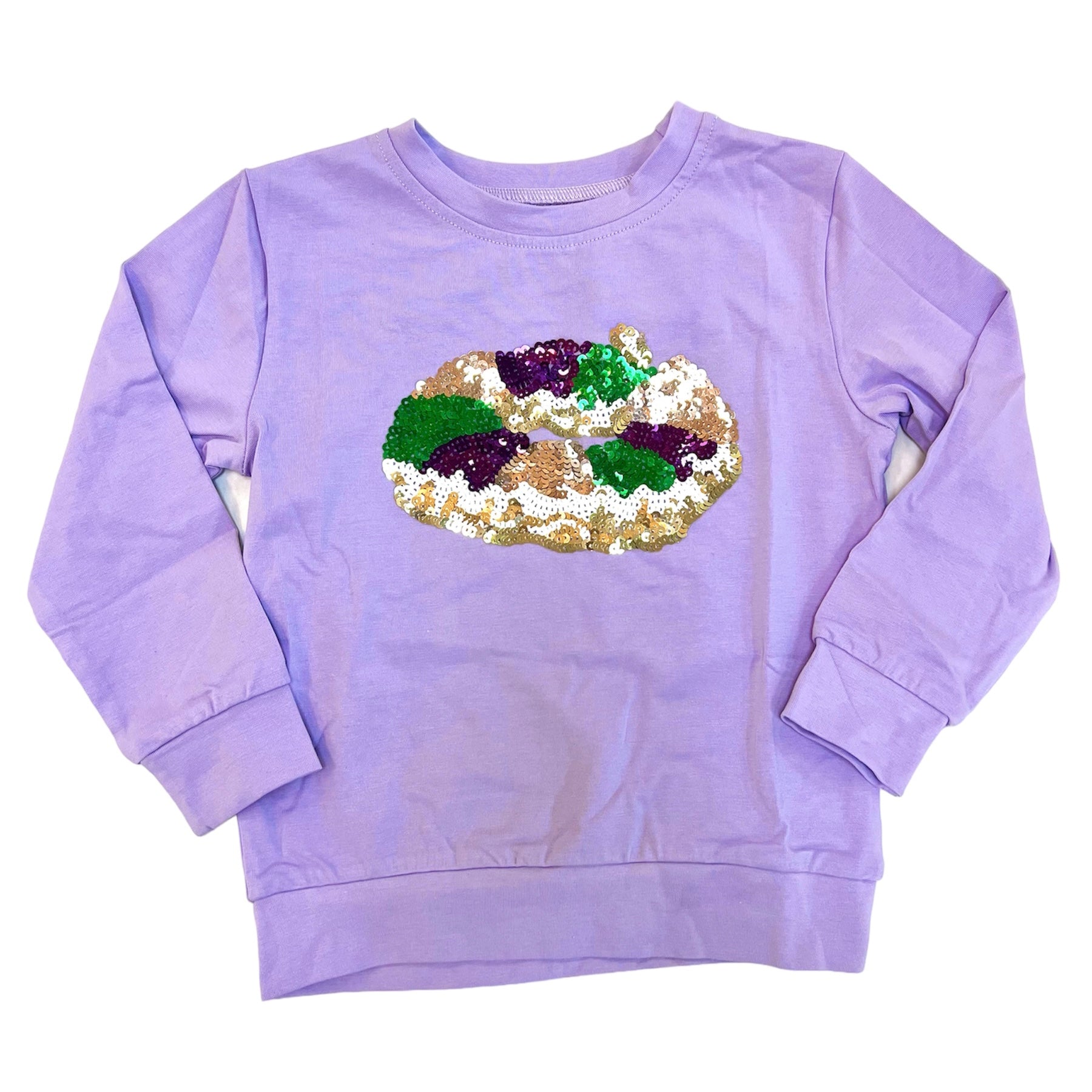 This unique tee is perfect for showing your Mardi Gras spirit! Let out your inner king or queen with the Lavender King Cake Sequin Tee. With its dazzling sequins, you'll look regal enough to join the parade!