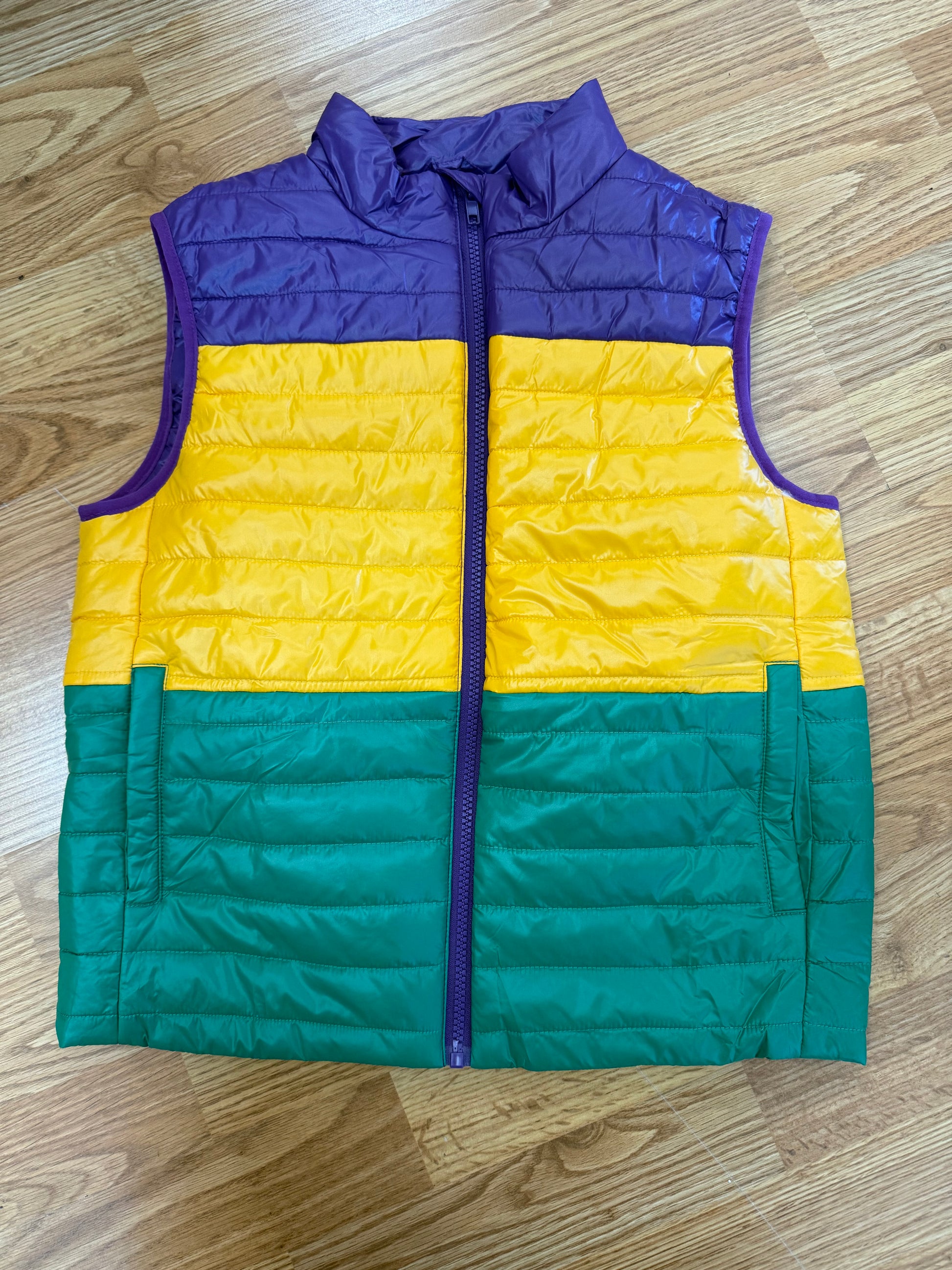Look cute and stylish this Mardi Gras season with our Quilted Vest! Featuring a playful and quirky design, this vest is the perfect addition to your festive wardrobe. Its quilted fabric provides both warmth and style, making it a must-have for any celebration.