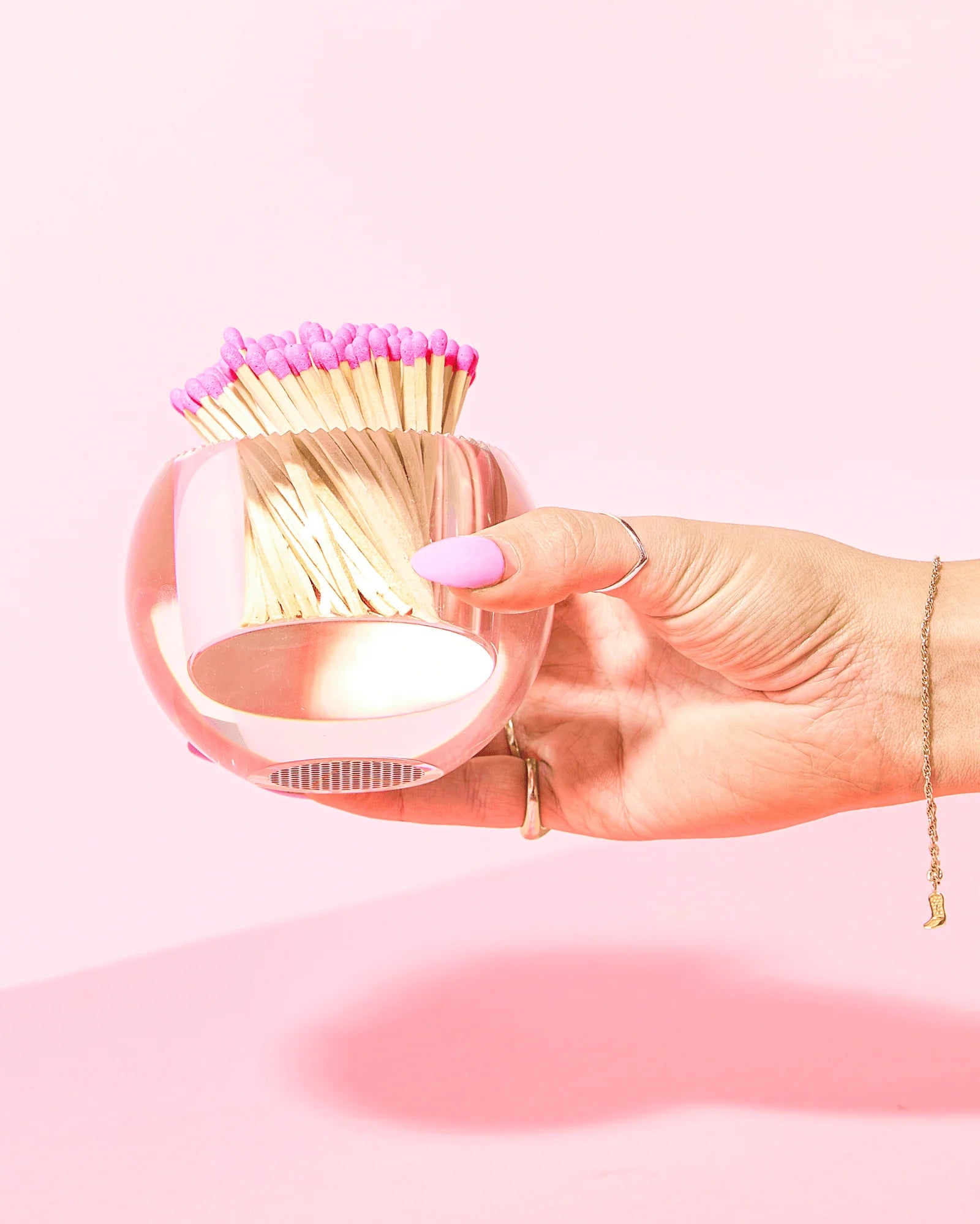 Get fired up with our Acrylic Match Striker! This acrylic match strike is the perfect accessory for your coffee table, desk, or any space that could use a little flair. It features a strike pad on the bottom and comes with 140 matches. Keep this baby ready for any occasion, let's get lit!