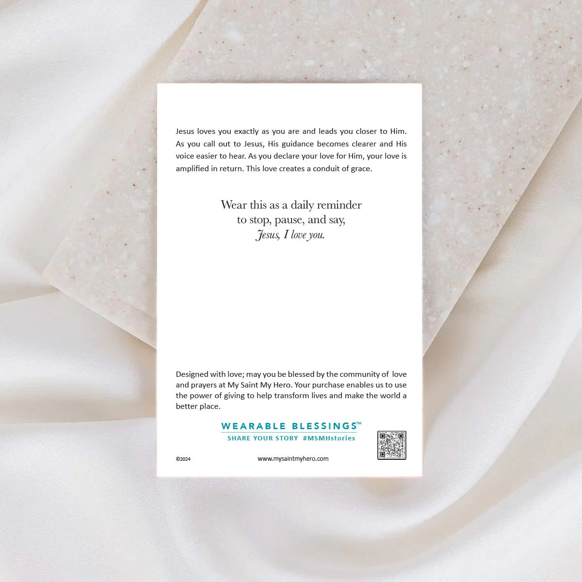Pause and claim your love for Jesus. Wear this as a reminder that you are loved unconditionally. Create an eternal exchange of love between you and Jesus.