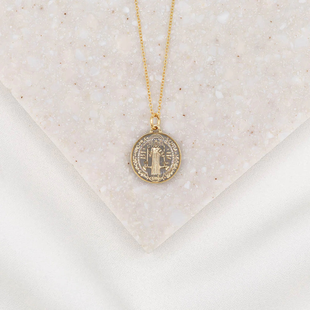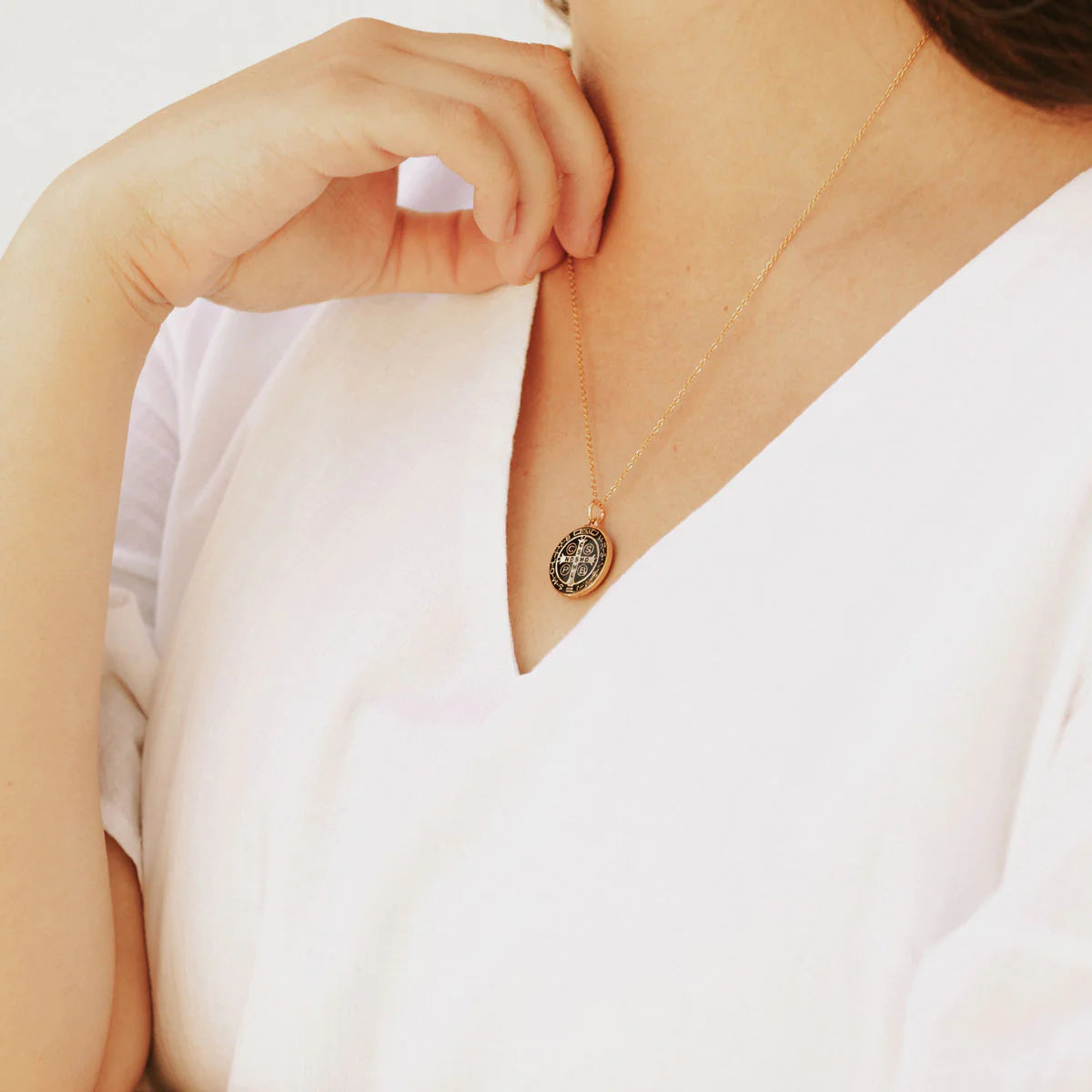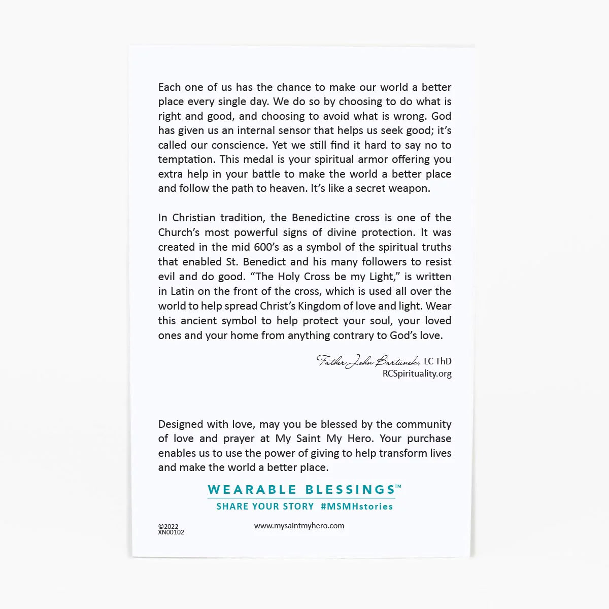 Wear this medal of protection as a reminder that you are protected by God’s great army of angels and saints. This Benedictine medal is a prayer for strength in time of temptation, for peace among ourselves and among nations and a petition that we may “walk in God’s way, with the gospel as our guide.”