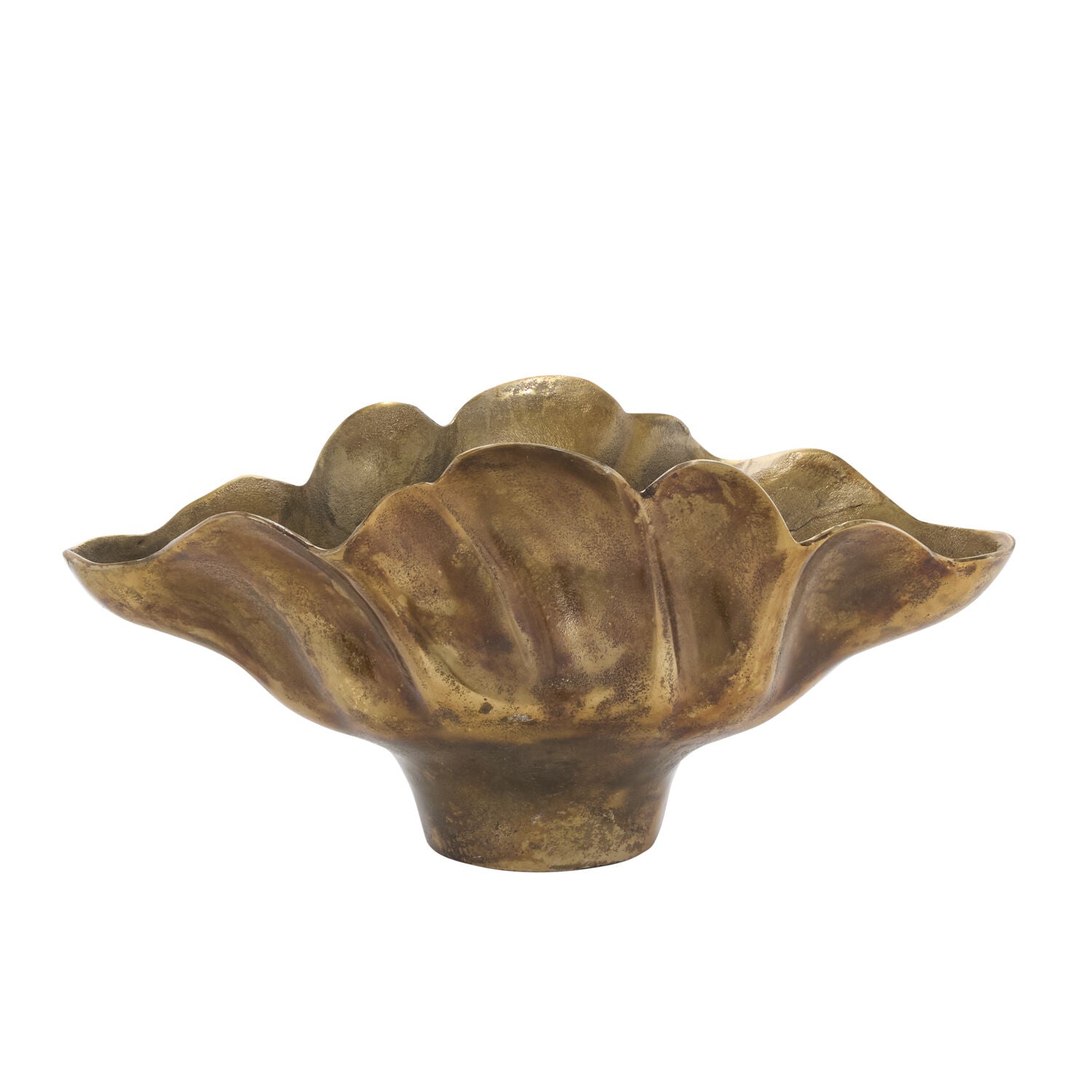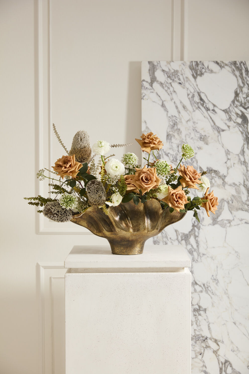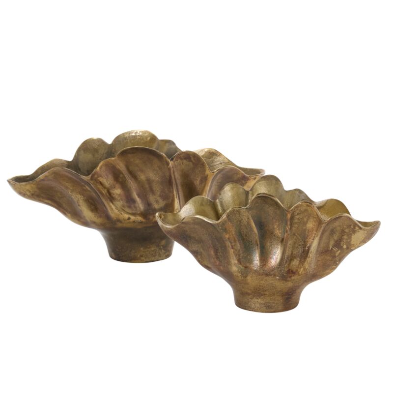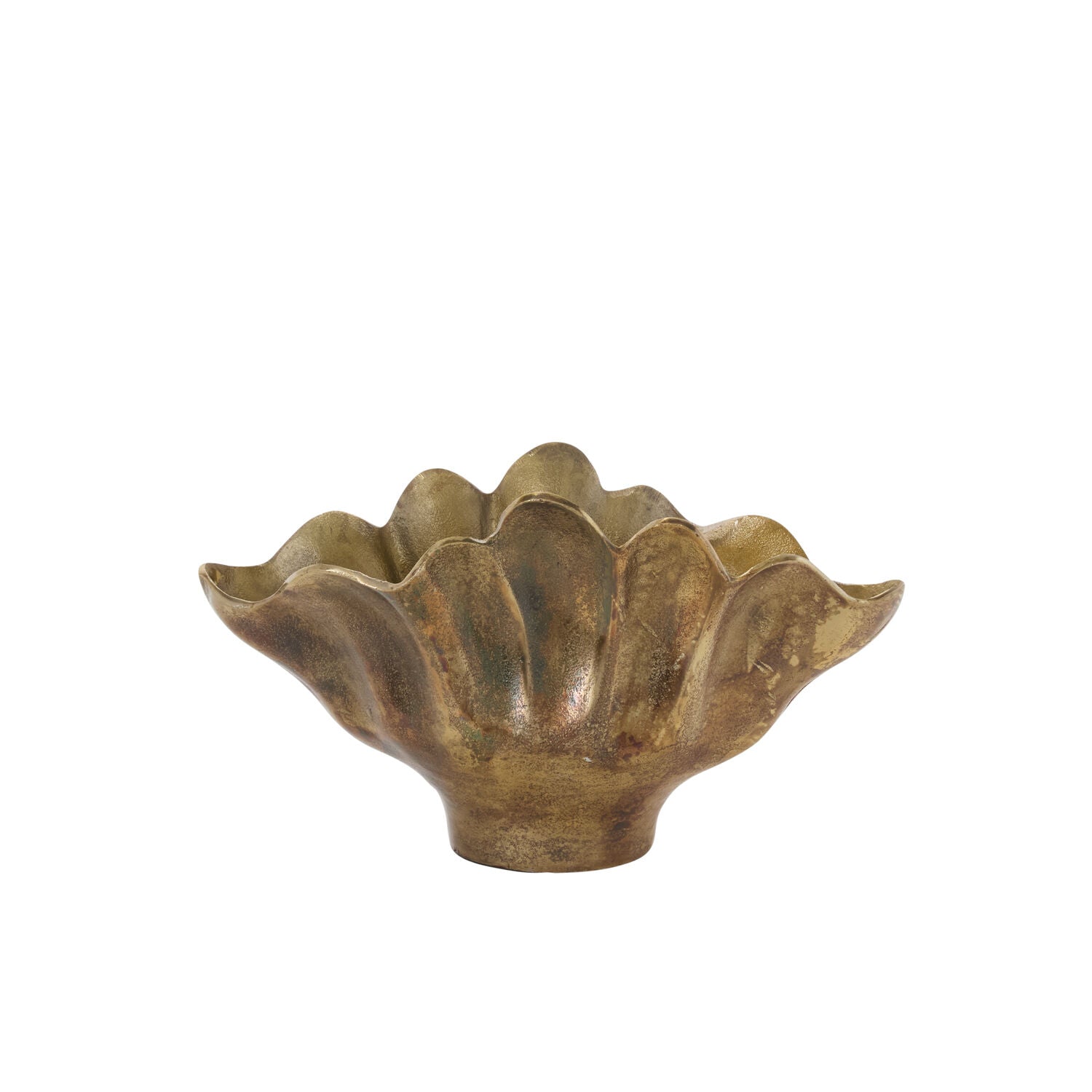 Artfully crafted to have an organic, undulating shape, the Phoenix Boat is a stunning vessel for bold florals, or can stand as a decorative piece on its own. Molded from recycled cast aluminum and finished in a warm, antique gold hue, the Phoenix has an old world feel combined with lots of function. The sturdy base keeps a large arrangement in place and the roomy interior can accommodate any type of floral mechanics.