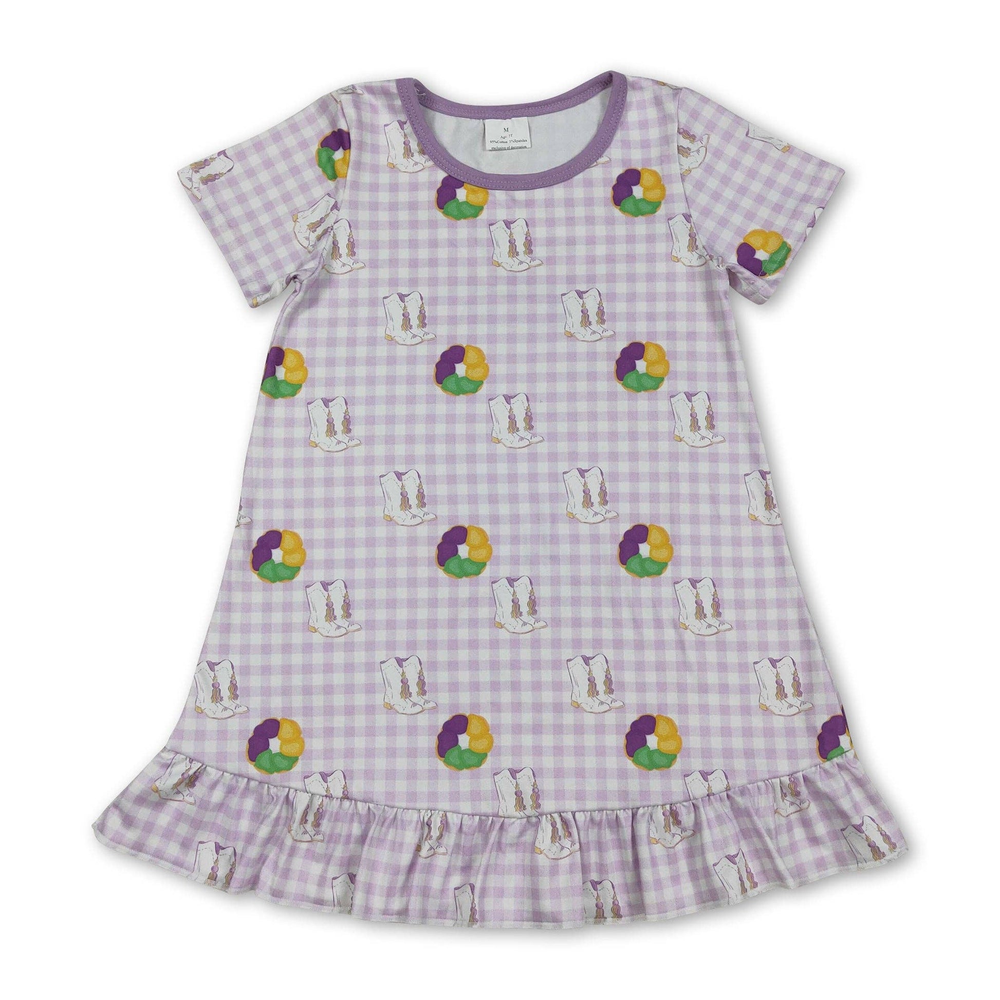 Plaid Purple Yellow Green Donut Boots Girls Mardi Gras Dress