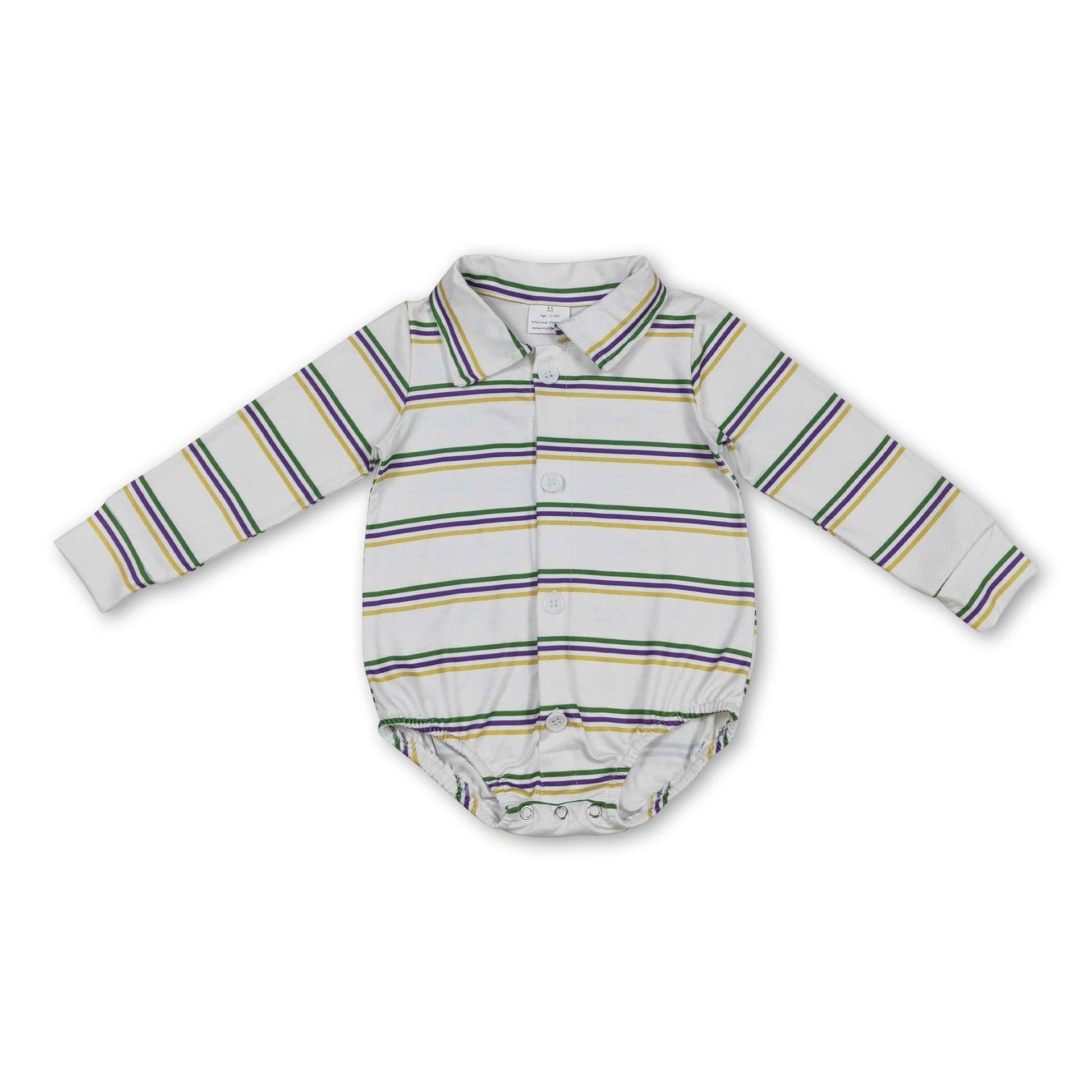 Purple Green Yellow Stripe Boy Mardi Gras Polo Romper
