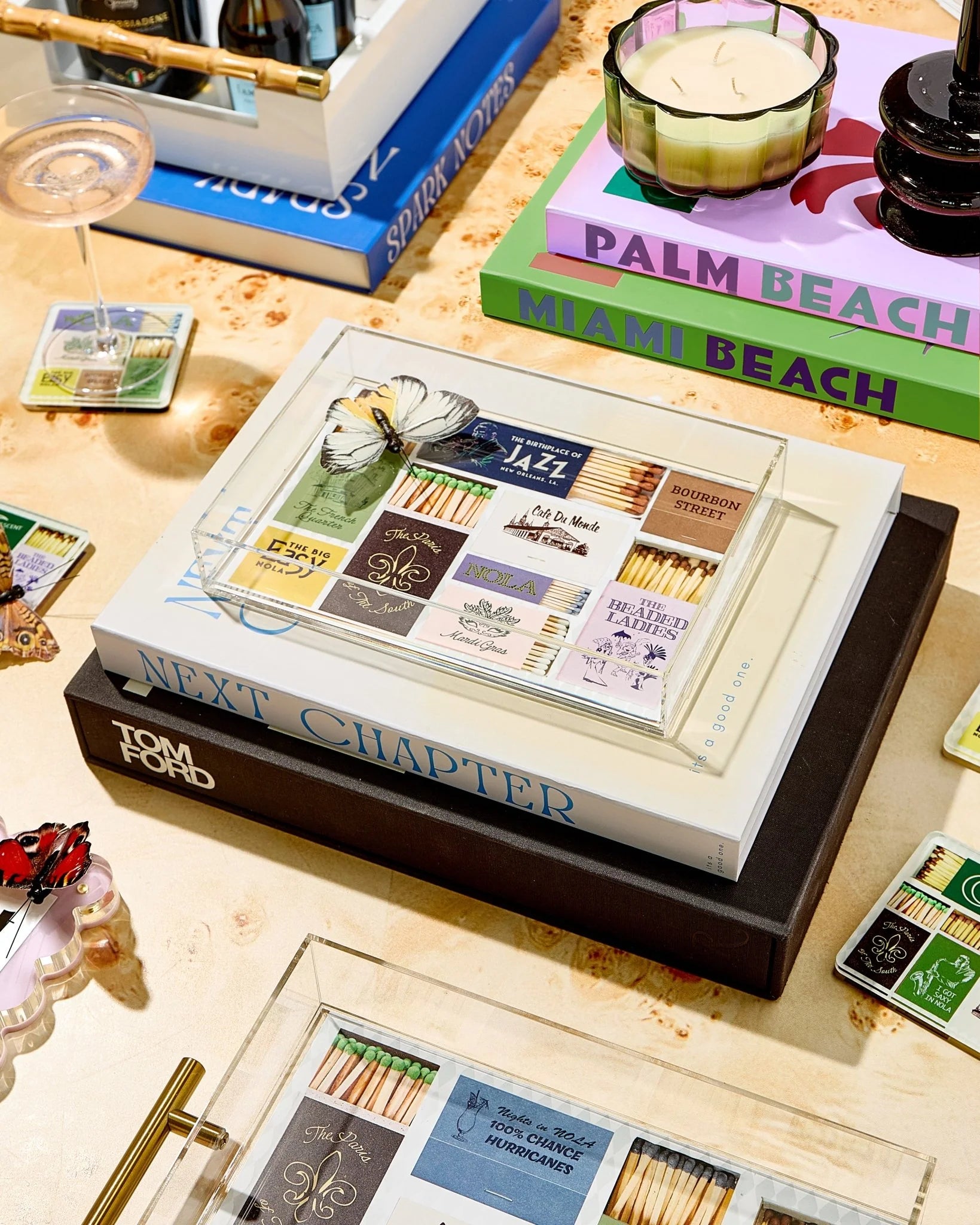 New Orleans: Show your love for the Big Easy! Spice up your home with our New Orleans Matchbook Small Tray! Made of durable acrylic, this tray features a unique design of NOLA themed matchbooks. This tray brings fun and functionality to any space! Laissez bon temps rouler!