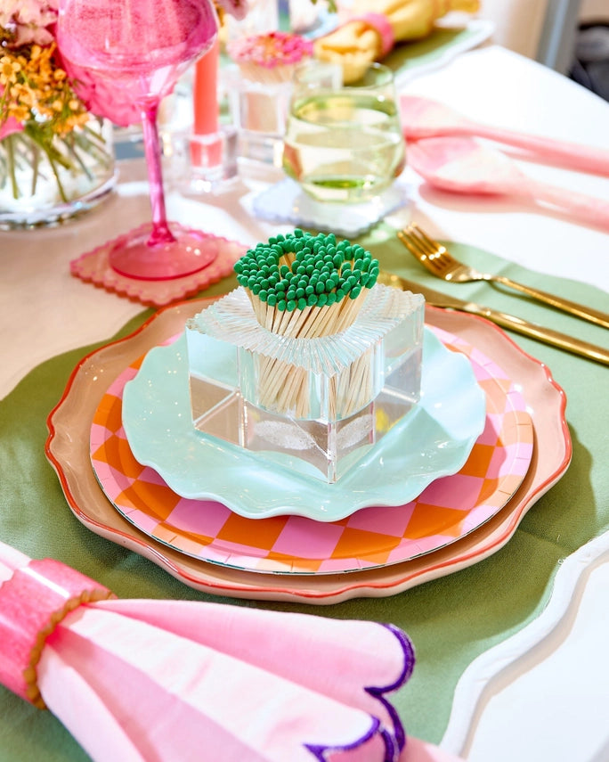 Meet your new flame! Our chic square acrylic match striker is as functional as it is fabulous. Each one comes ready to light with 140 colorful matches and a built-in striker pad on the bottom of the vessel. Designed to double as décor, it’s the perfect little luxury for your coffee table, vanity, or next to your favorite candle. Refillable, reusable, and ridiculously cute - because even lighting a candle should spark joy.