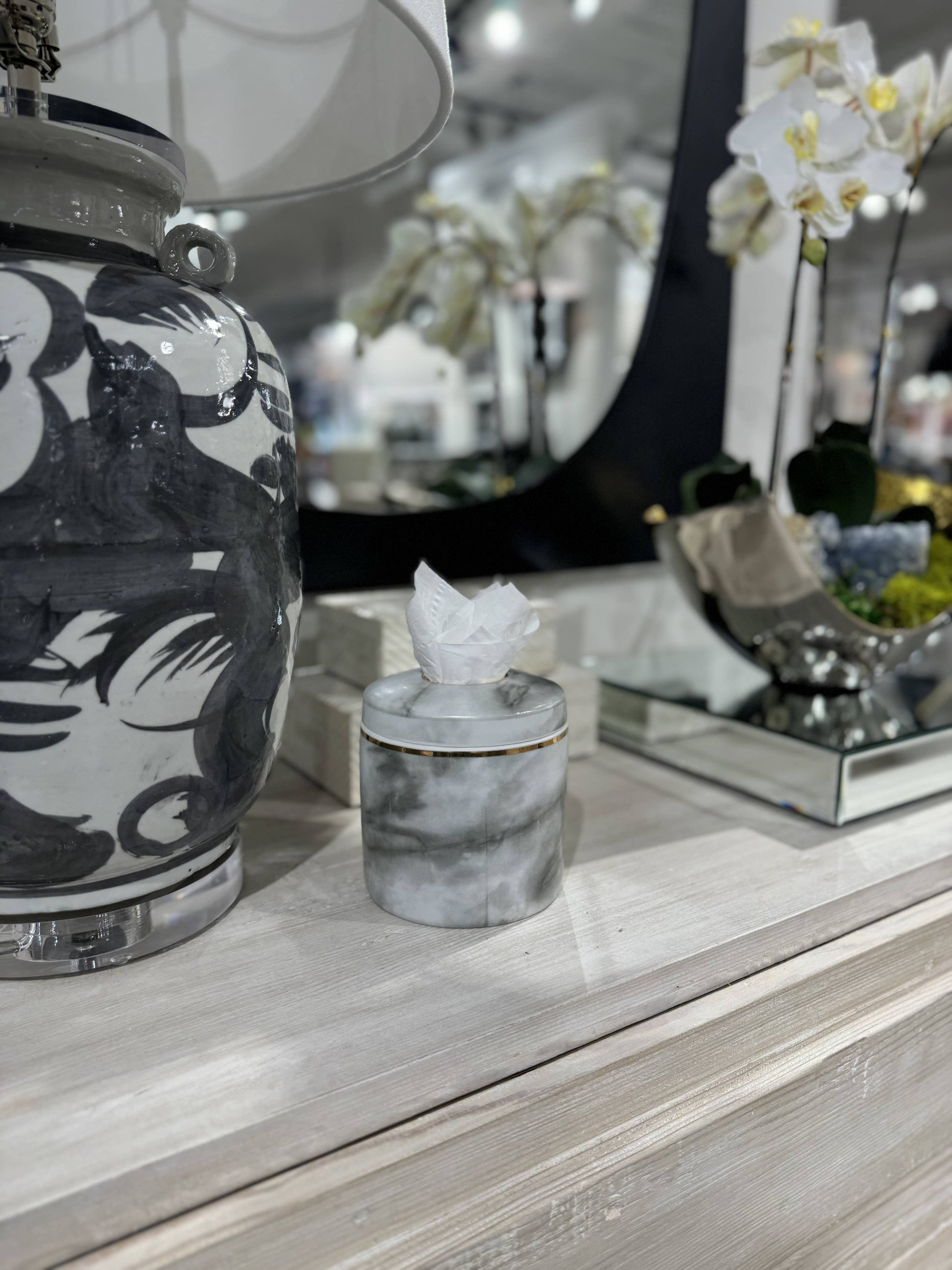 Meet Willow, the “it” girl. She’s a cool cat, always on trend and loves to have a good time. This fashion forward tissue vessel will be all the rage! Placed next to your favorite lamp or on your coffee table, the Willow will be sure to capture the attention of all your guests. The Details: * Ceramic re-fillable tissue vessel * Please note that due to the handmade nature of this product, some vessels may have slight imperfections. Dimensions: * 5” x 5”