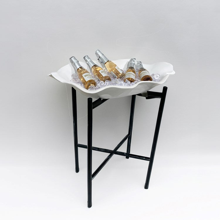 All rise! Our VIDA Nube Extra Large Oval Centerpiece (White) floats like a cloud when placed on the towering VIDA Metal Stand for Extra Large Centerpiece. With a rubberized material to hold the centerpiece in place, the black powder coated stand adds a sleek and modern touch to the iced beverages presentation. The modern black finish is so adaptable, fitting into many different types of environments. Composed of powder coated metal. Some assembly required. Hand wash.